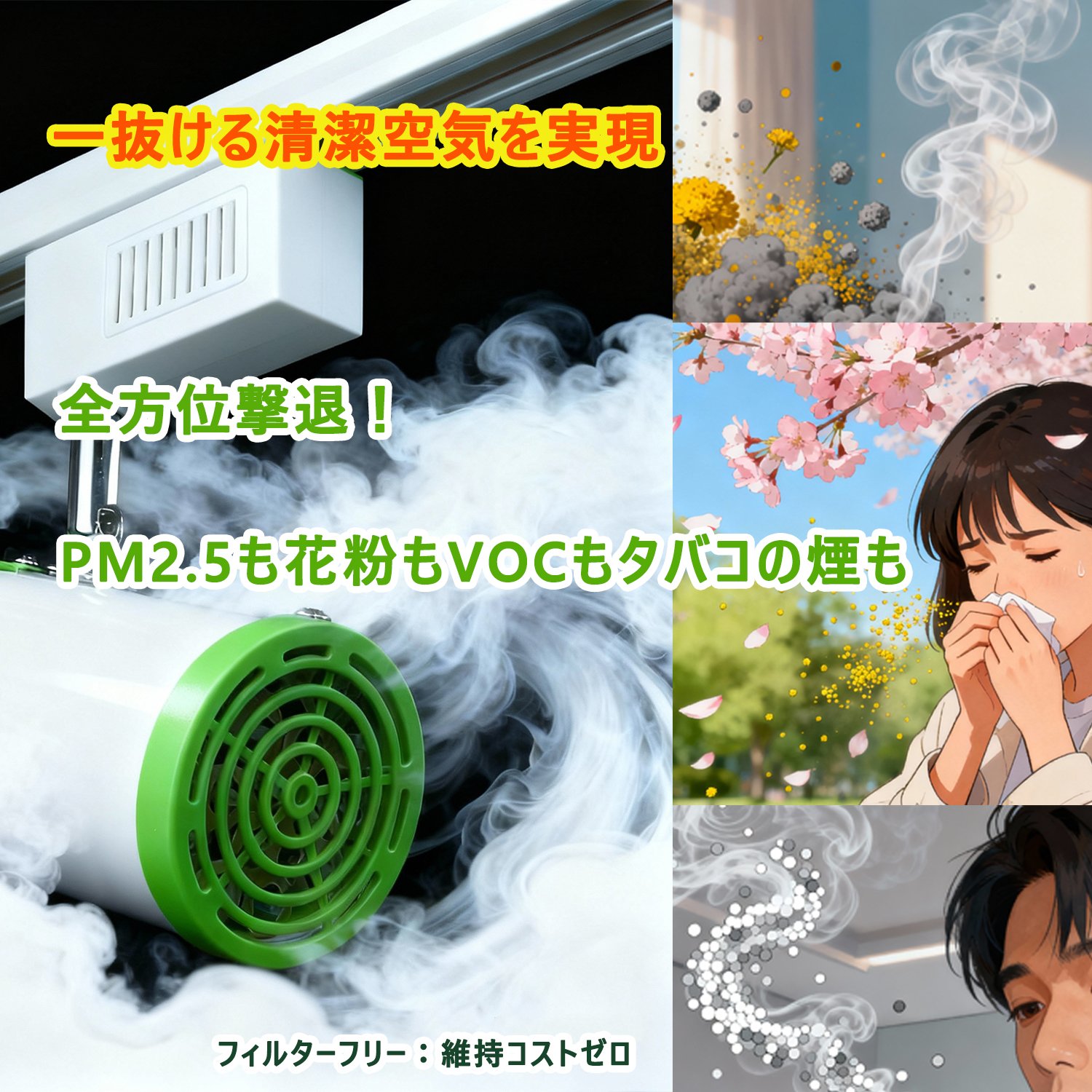 •PM2.5、異臭、アレルゲン、揮発性有機化合物(VOC)を除去